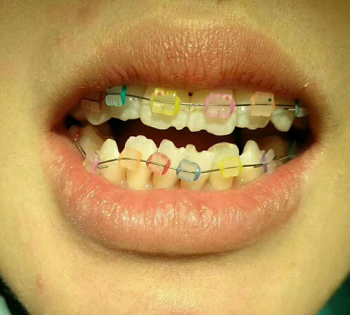 2、普通钢丝托槽牙套,进口金属托槽表面光滑,体积小巧,结实耐用,槽沟准确,制作精良,有助于牙齿的完美排列,托槽边缘特有的圆润化处理减少了对口腔黏膜的不良刺激,并且价格适中,牙齿矫正期间口腔卫生较繁琐。